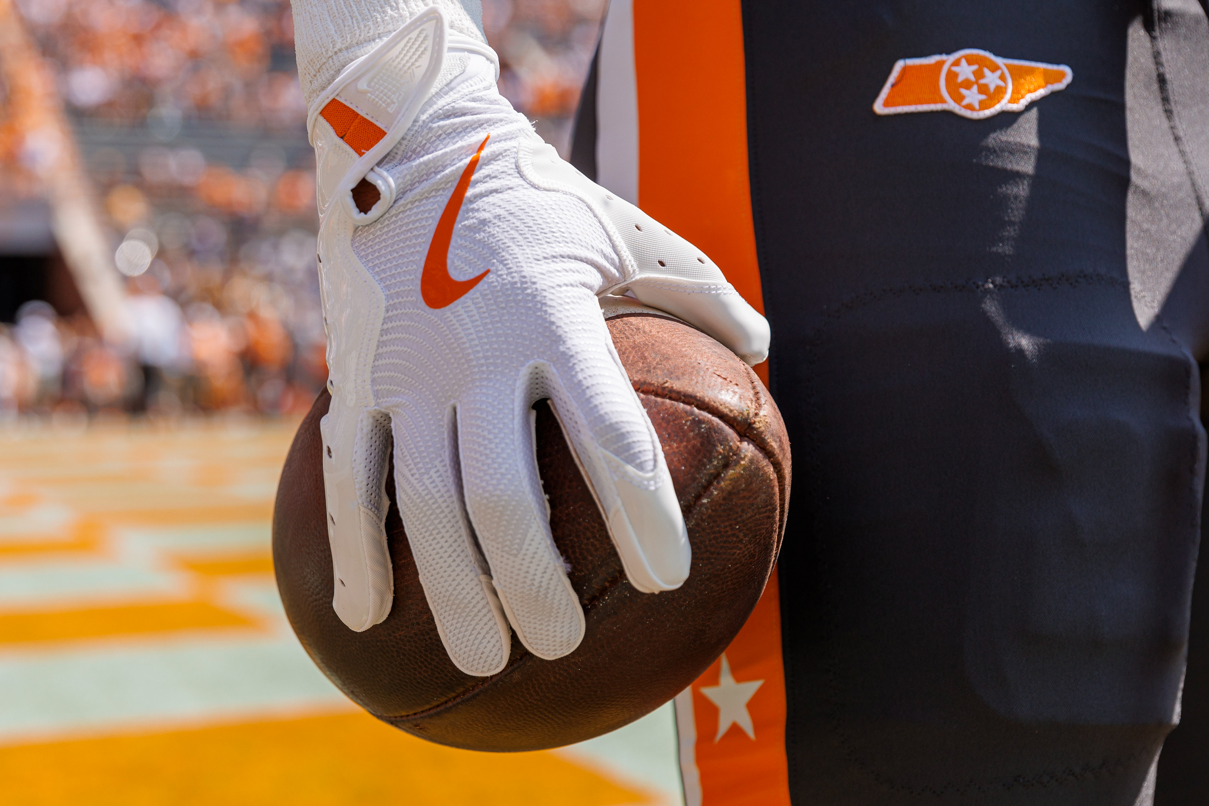 The helmets feature the familiar orange Power T and a mountain design in shades of grey that pay tribute to Tennessee’s famous Great Smoky Mountains National Park. Similar to the side of the pants, the center helmet stripe was orange and adjoined with the Tennessee state flag white stripe.