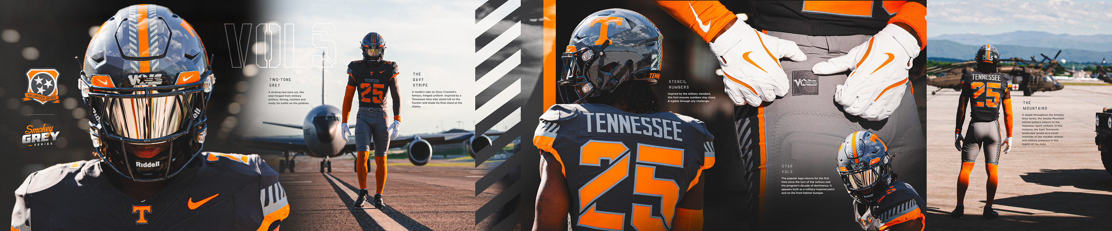 Tennessee’s defining pillar of service and selfless leadership for more than 200 years, the “Volunteer Spirit” provides the inspiration behind the newest Nike Smokey Grey series football uniform that will honor the United States Armed Forces.