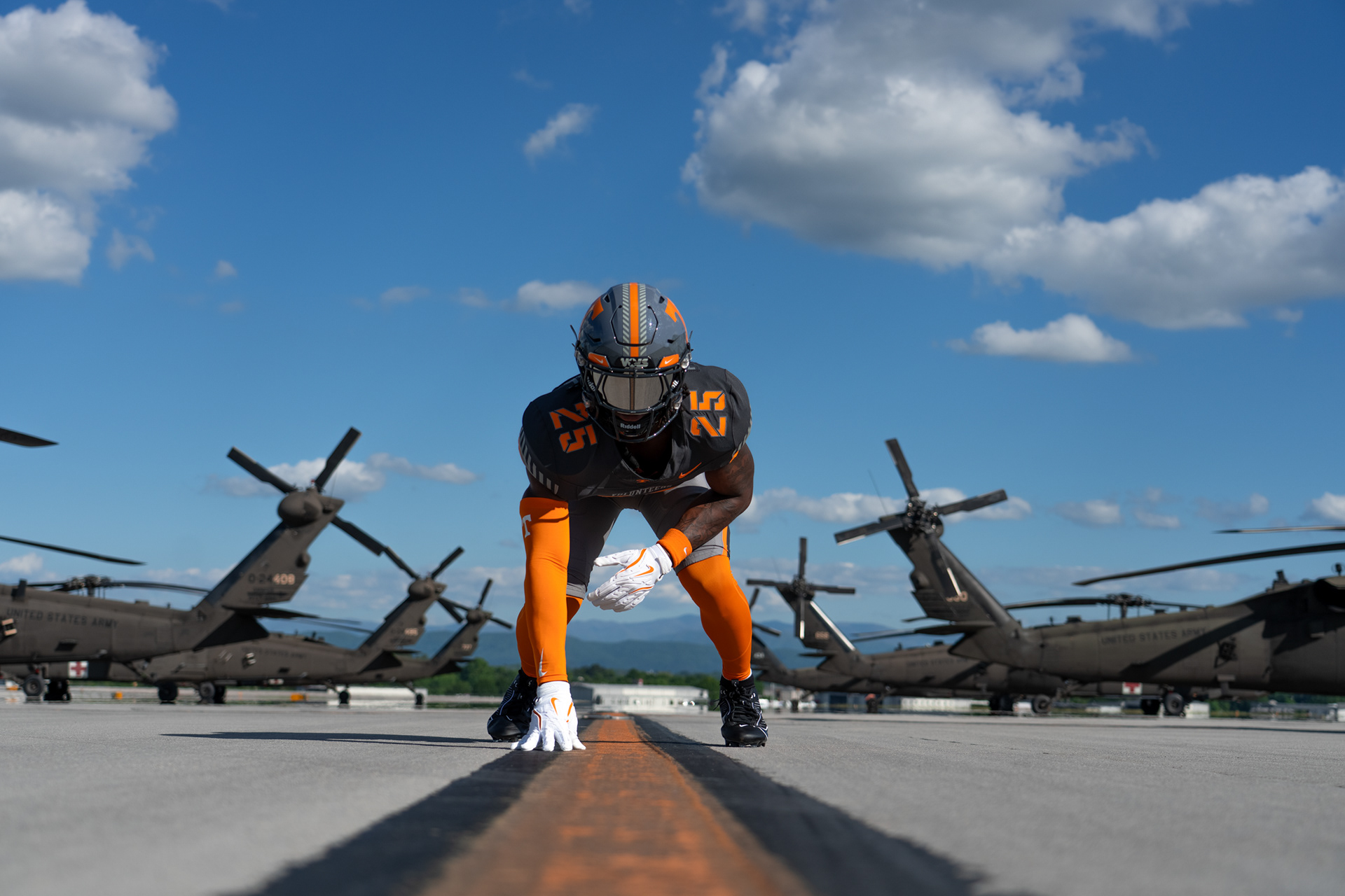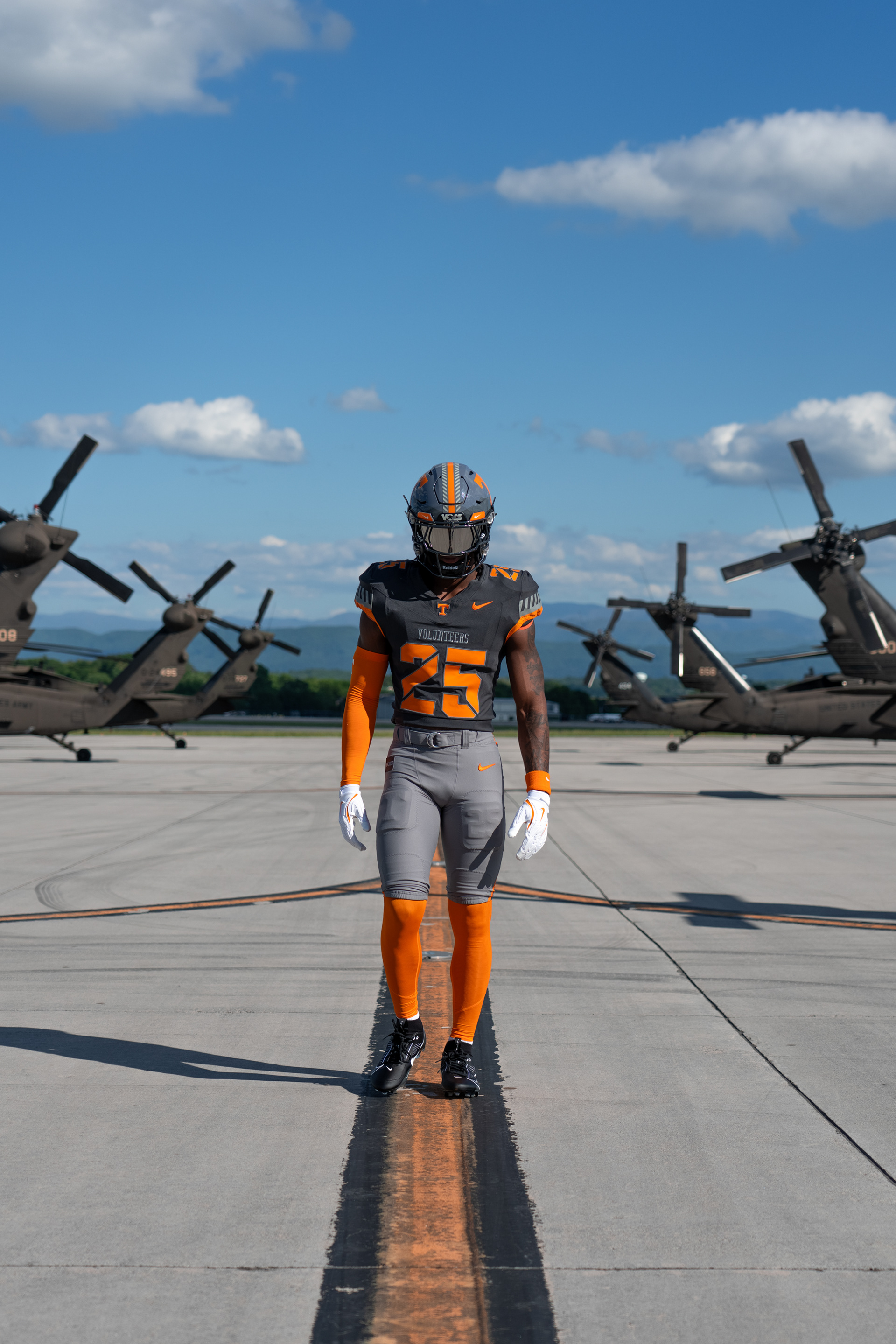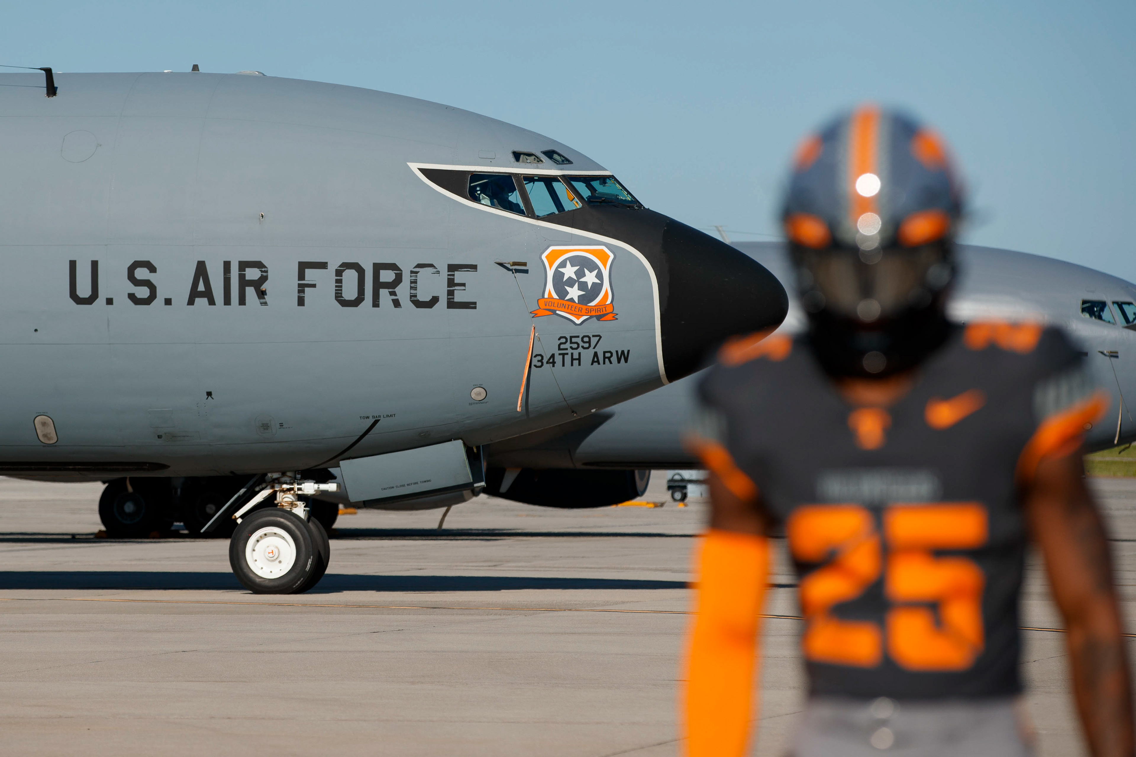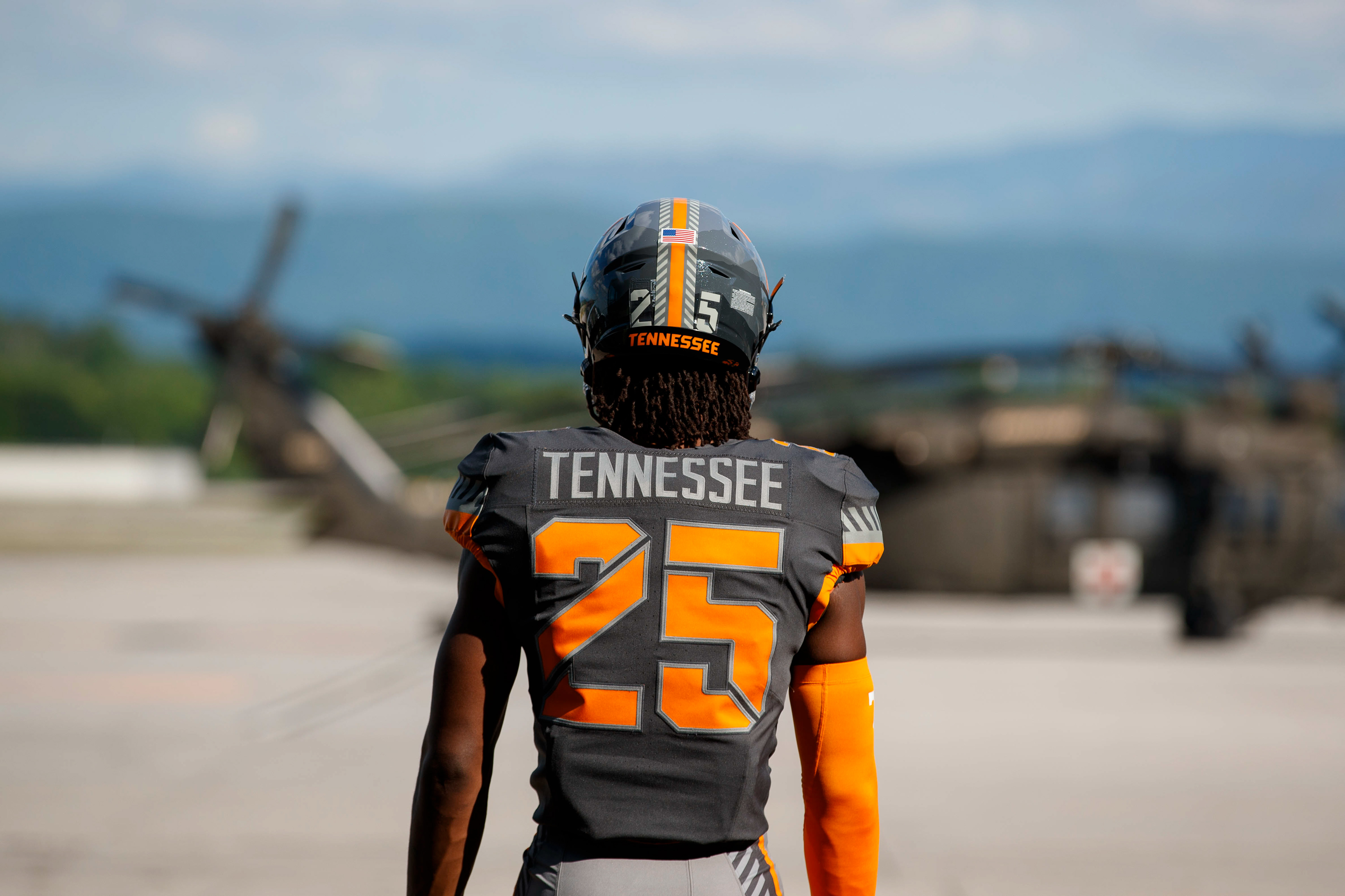 The “Volunteer Spirit” uniform also pays tribute to the legendary Volunteer, Davy Crockett, and was brought to life in collaboration with the Tennessee Military Department, the 134th Air Refueling Wing in East Tennessee and the Tennessee National Guard.