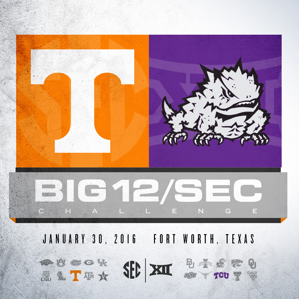 Matchup graphic for Tennessee's 2015-16 Big 12/SEC Challenge Match-Up with TCU. @Vol_Hoops
